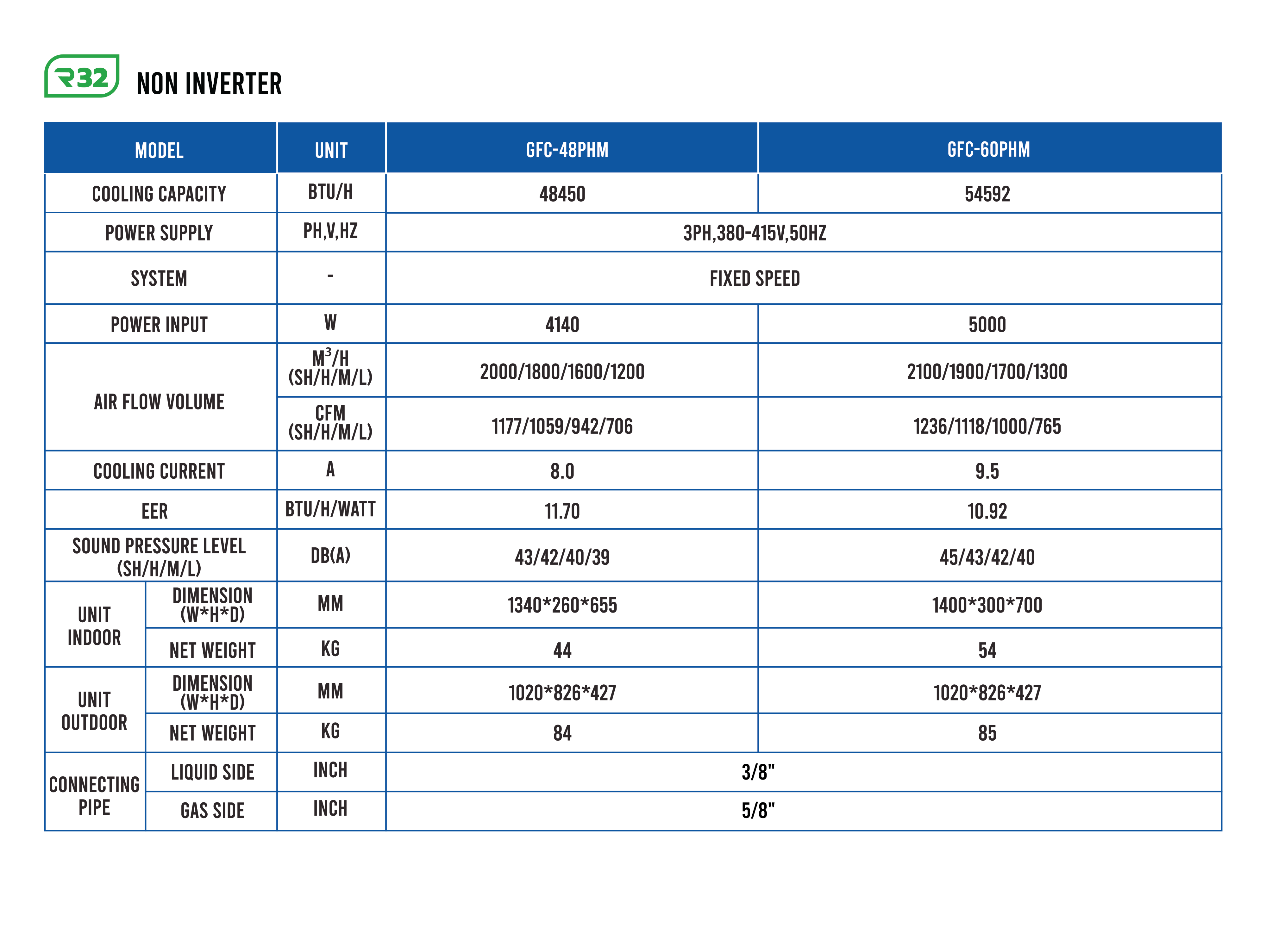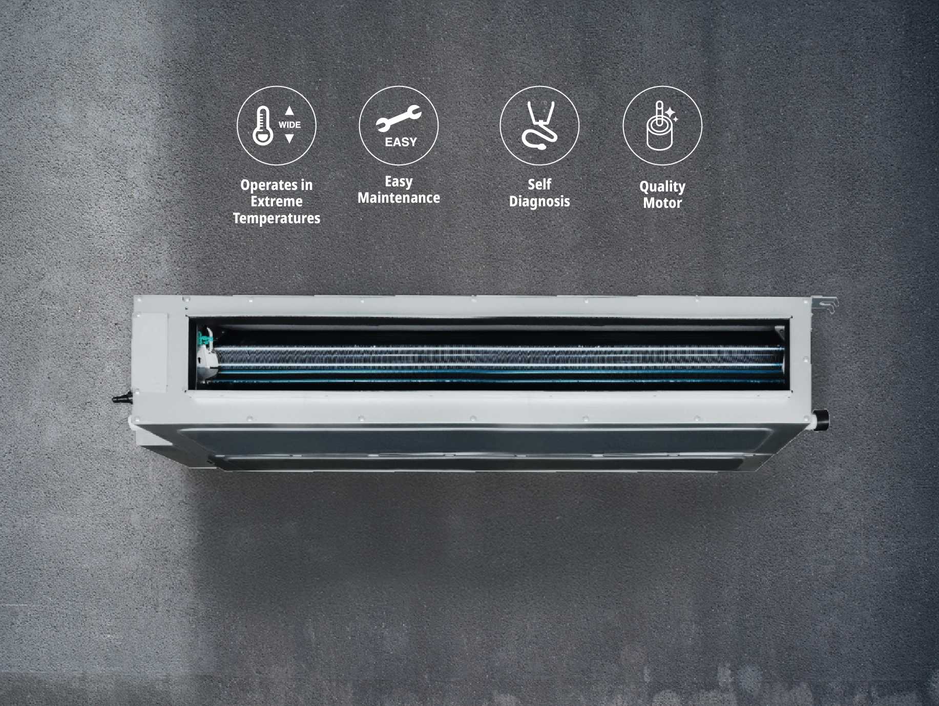 The Gree U-Match Duct Series is a high-performance single split duct-type air conditioning solution designed for projects that require flexible installation and powerful, stable cooling. Using environmentally friendly R32 refrigerant, this series is available in two options: Inverter and Standard (Non-Inverter) to suit different performance needs and budgets. The Inverter type comes in 8 models, covering cooling capacities from 12,500/19,300/27,000/31,000/35,000/44,500/48,500/ 57,000 BTU, making it suitable for a wide range of room sizes and commercial applications. The Standard (Non-Inverter) type is available in 2 models with capacities from 48,450 BTU and 54,592 BTU, providing strong and reliable cooling for larger spaces. For long-term durability and easier operation, it features Easy Maintenance to simplify servicing, High ESP to support duct design flexibility, and Inner Groove Copper to enhance performance and durability. It also includes Wide Voltage Startup for stable operation under unstable power conditions and Self Diagnosis for faster troubleshooting. To ensure dependable performance in demanding environments, the series is equipped with a Quality Motor, a Strong Outdoor Unit, the ability to Operate in Extreme Temperatures, and Comprehensive Protection for enhanced system safety and long-lasting reliability.